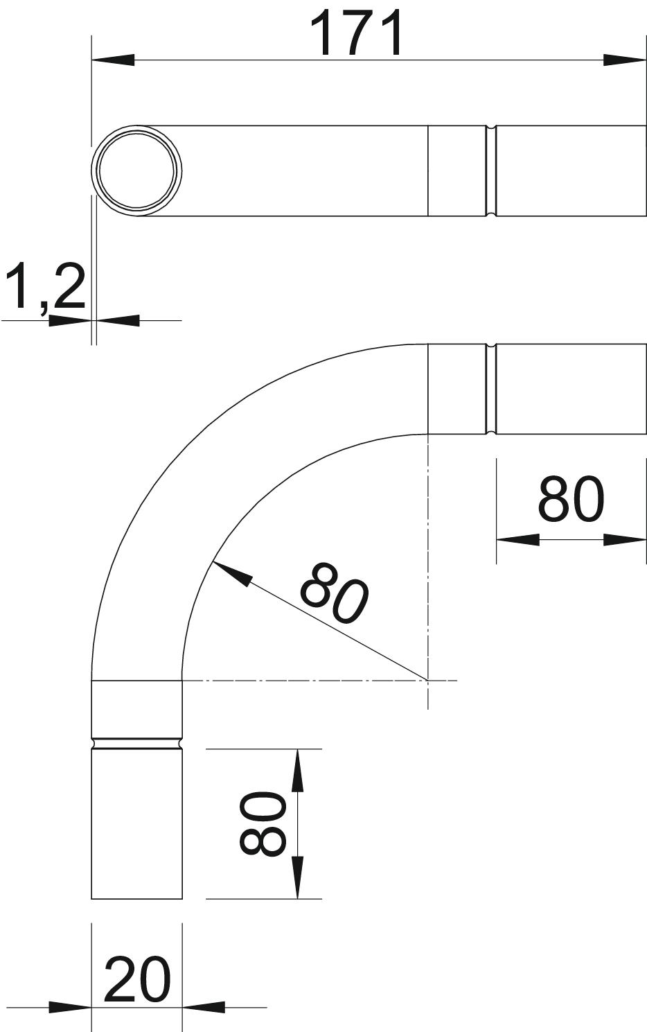 Angle de coude 90 ° Avec manchon oui Avec ouverture d'inspection et couvercle non Cote A 80 mm Cote B 171 mm Cote D 20,2 mm Cote l 30 mm Cote R 70 mm Cote t 1,2 mm Dimension Ø20mm Dimension m (mm) M20 En deux parties non Flexible non Matériau Aluminium Modèle Emboîtement Plage de températures d’utilisation max. 250 °C Plage de températures d’utilisation min. -45 °C pour diamètre de tube nominal 20 mm Sans halogène non Surface brossée non Surface polie non - Tous les types