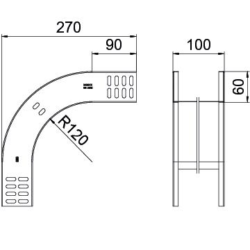 Description du produitCoude vertical à 90° convexe pour tous les types de chemins de câbles d'une hauteur d'aile de 60 mm.