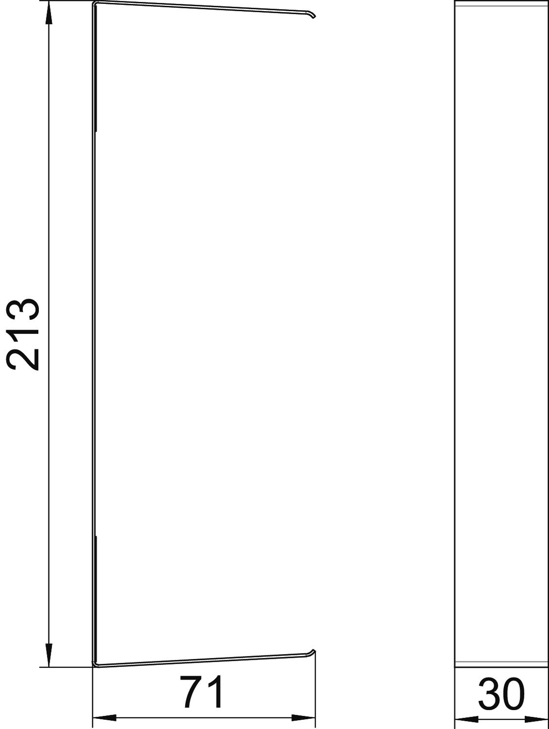 Couleur blanc pur; RAL 9010 Dimension 70x210x30mm Empreinte CO2 (GWP) du berceau à la porte 0,3486 kg CO2e / 1 Pièce forme universel Hauteur 71 mm Hauteur de goulotte min. 70 mm Indice de protection IP30 Indice de protection code IK IK10 Largeur 213 mm Largeur de la partie supérieure 76,5 mm Longueur 30 mm Matériau Acier Modèle Cache pour découpes de goulottes Plage de températures d’utilisation max. 60 °C Plage de températures d’utilisation min. -25 °C pour dimension de goulotte 70x210 pour hauteur de goulotte 70 mm pour largeur de goulotte 210 mm Profondeur de la goulotte 70 mm Sans halogène oui Type de fixation autocollant - Tous les types