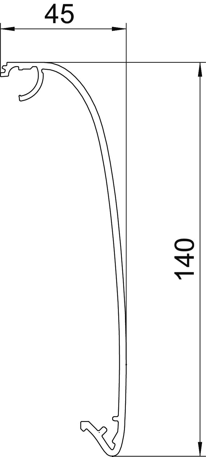 Couleur aluminium Dimension 45x140x999 Empreinte CO2 (GWP) du berceau à la porte 16,6574 kg CO2e / 1 Pièce Film de protection oui Hauteur 45 mm Largeur 140 mm Longueur 999 mm Matériau Aluminium Modèle lisse Sans halogène oui Surface anodisé Traitement antibactérien non Type de montage de la couvercle chevauchant - Tous les types