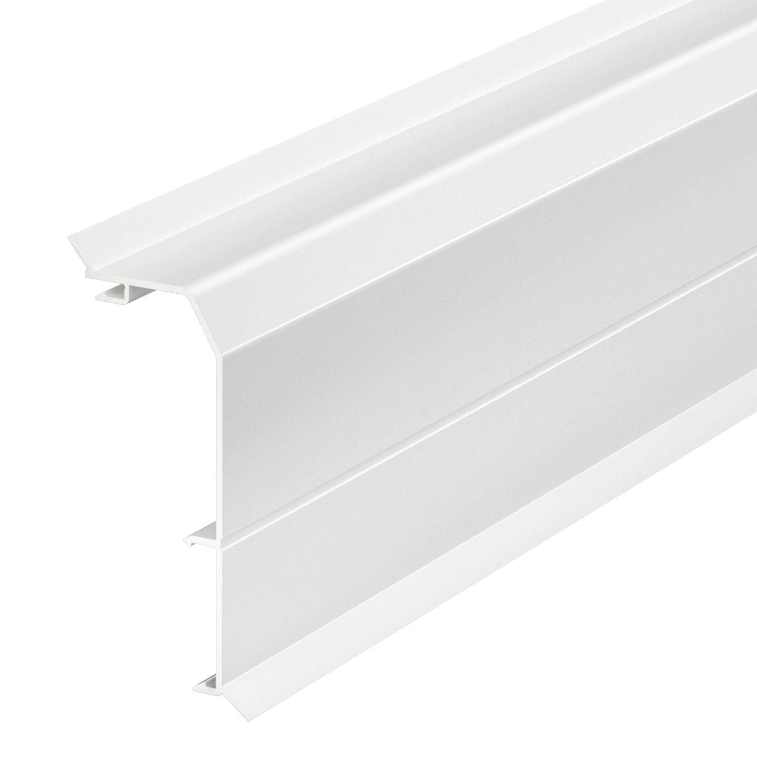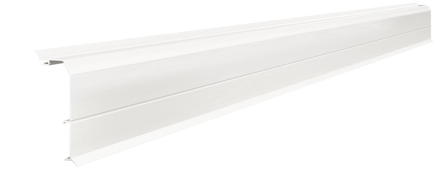 Pour le clipsage sur le socle du système de goulotte. Avec languette d'étanchéité pour la protection contre l'humidité et la compensation des légères inégalités au mur.