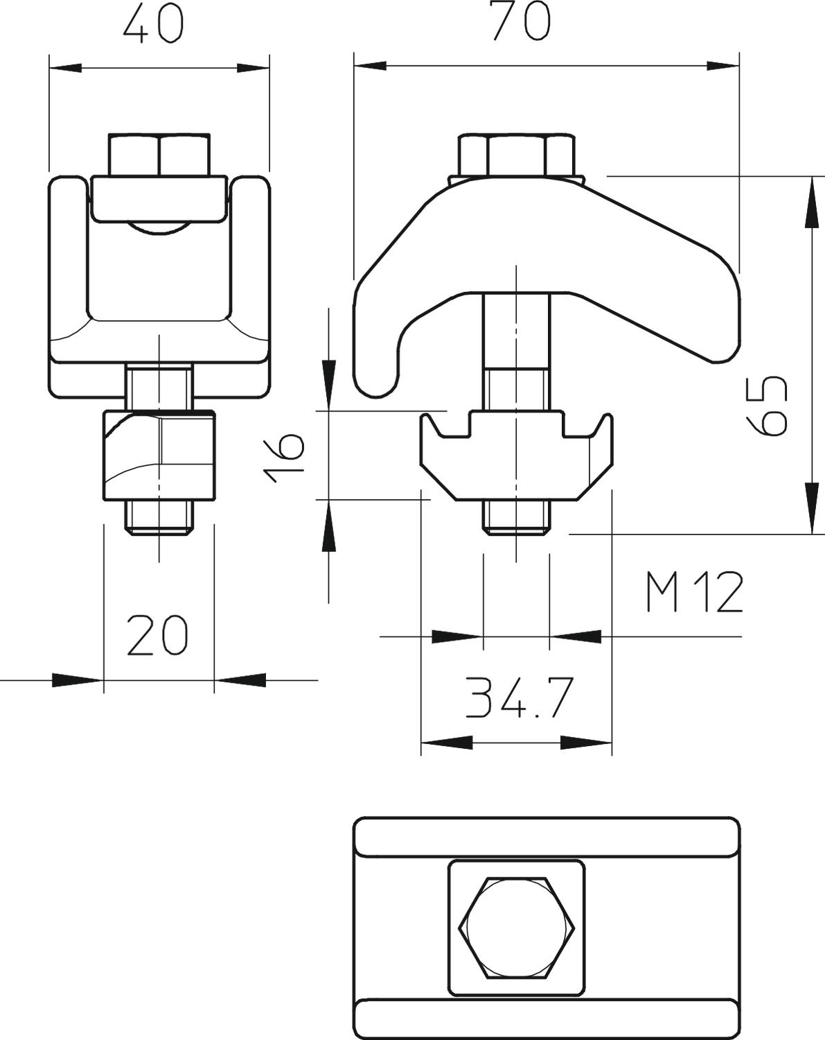 Le crapaud de serrage est utilisé en association avec les rails profilés d'une ouverture de 22 mm.