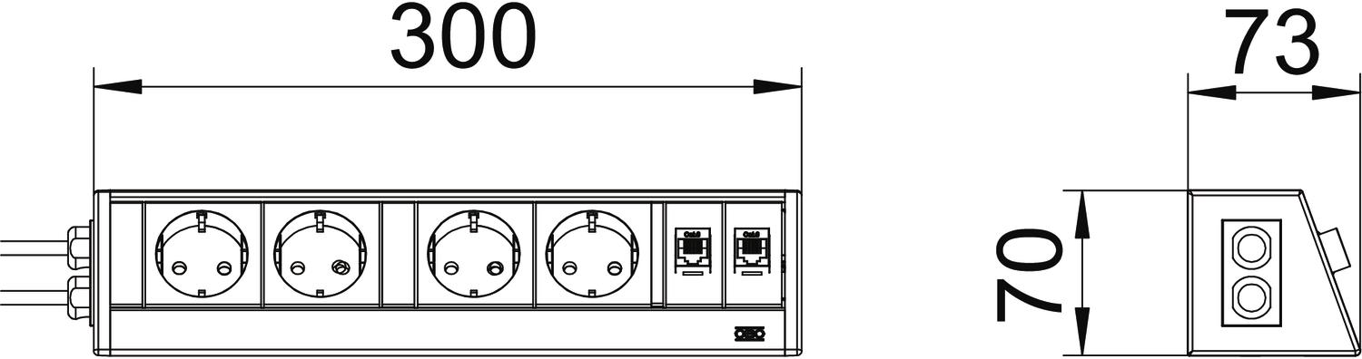 Couleur aluminium Extensible non Hauteur 70 mm Longueur 300 mm Longueur du câble d'alimentation 3 m Matériau Aluminium Modèle Boîtier argenté anodisé Nombre de prises de courant SCHUKO 4 nombre de raccordements CAT 6 2 Parafoudre non Relevable non - Tous les types