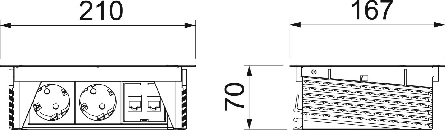 Dimension 210x167x68 Extensible non Longueur 210 mm Longueur du câble d'alimentation 3 m Matériau acier inoxydable 1.4301 Nombre de prises de courant SCHUKO 2 nombre de raccordements CAT 6 2 Parafoudre non Profondeur de montage 68 mm Relevable oui - Tous les types