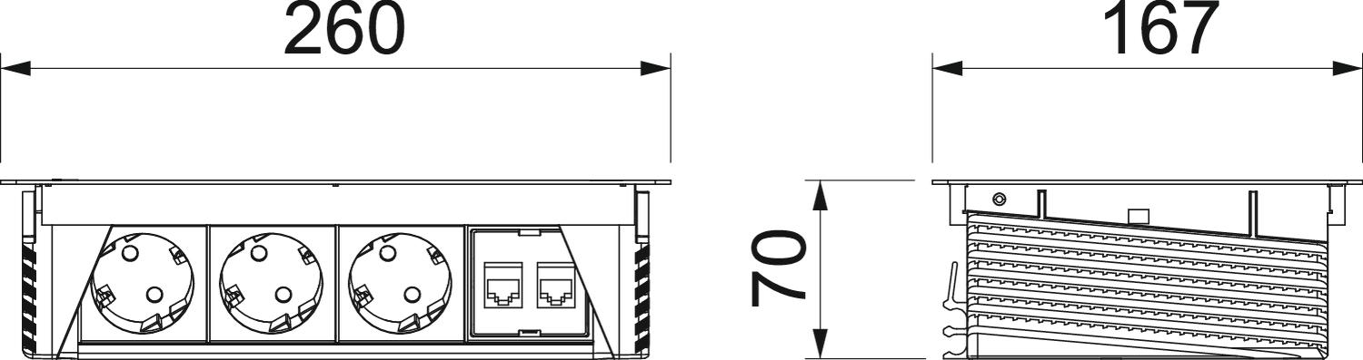 Dimension 260x167x68 Extensible non Longueur 260 mm Longueur du câble d'alimentation 3 m Matériau acier inoxydable 1.4301 Nombre de prises de courant SCHUKO 3 nombre de raccordements CAT 6 2 Parafoudre non Profondeur de montage 68 mm Relevable oui - Tous les types