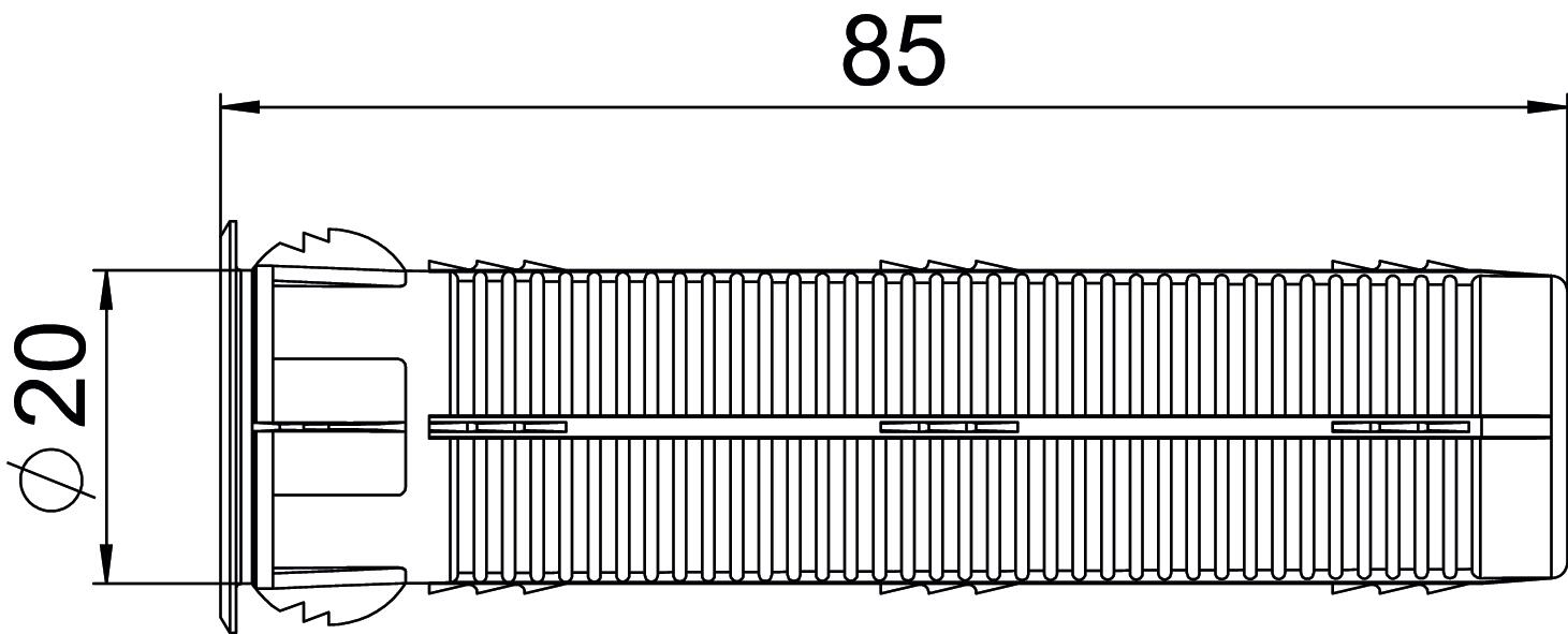 Autotaraudeuse non Avec bride oui Cote D 20 mm Cote L 85 mm Couleur beige ; RAL 1001 Diamètre de perçage max. 20 mm Dimension 85 x 26 Longueur 85 mm Matériau Polypropylene/polyethylene Modèle à insérer Profondeur de perçage 95 mm - Tous les types