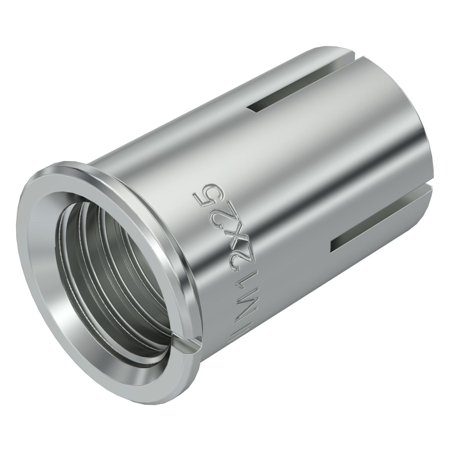 Autotaraudeuse non Convient pour matériau de construction Béton, Pierre naturelle Cote L 25 mm Couleur zinc Diamètre de perçage min. 15 mm Dimension M12x25 Dispositif de fixation autres Filetage M12 Filetage, métrique 12 Homologations existantes oui Longueur 25 mm Matériau Acier Modèle à enforcer Plage de charge autorisée zone de traction 1,9 Profondeur de perçage 25 mm Profondeur de vissage max. 14 mm Profondeur de vissage min. 12 mm Surface galvanisé Type de filetage métrique Type de montage cheville, cheville d’ancrage Montage à fleur - Tous les types