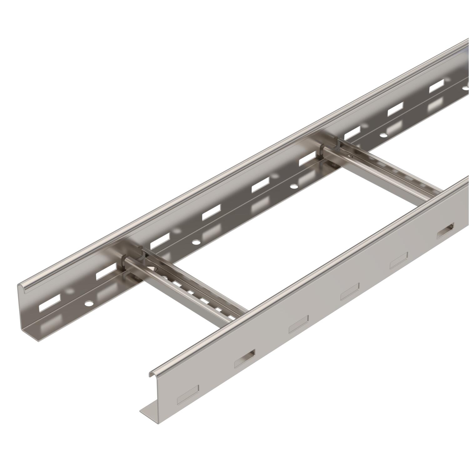 Description du produitÉchelle à câbles d'une hauteur d'aile de 60 mm avec échelons soudés à profilé C30 ouvert vers le haut. Longeron latéral enroulé pour le renforcement et la protection des bords. La fixation sur console s'effectue avec des pièces de serrage de type LKS 40. La fente de l'échelon mesure 16,5 mm. La bride de fixation correspondante est de type 2056.