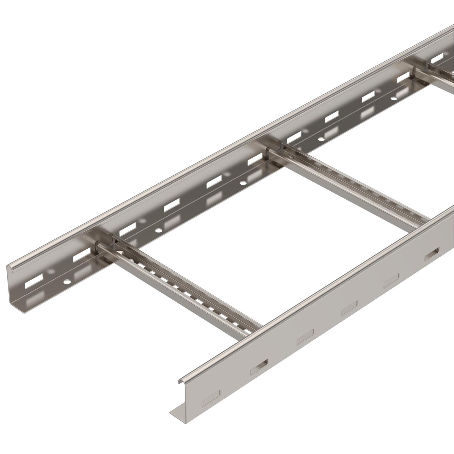 Description du produitÉchelle à câbles d'une hauteur d'aile de 60 mm avec échelons soudés à profilé C30 ouvert vers le haut. Longeron latéral enroulé pour le renforcement et la protection des bords. La fixation sur console s'effectue avec des pièces de serrage de type LKS 40. La fente de l'échelon mesure 16,5 mm. La bride de fixation correspondante est de type 2056.