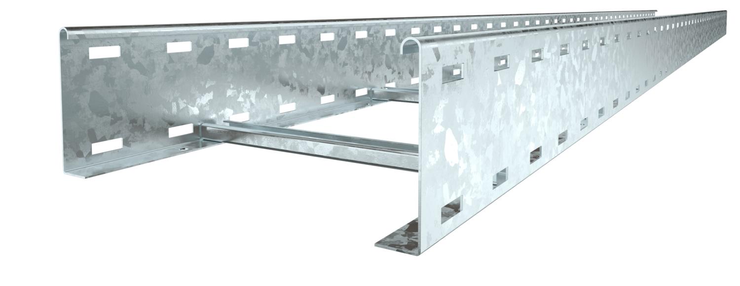 Description du produitEchelle à câbles avec longeron latéral perforé d'une hauteur d'aile de 110 mm, avec échelons rivetés (profilé en C) ouverts vers le haut.