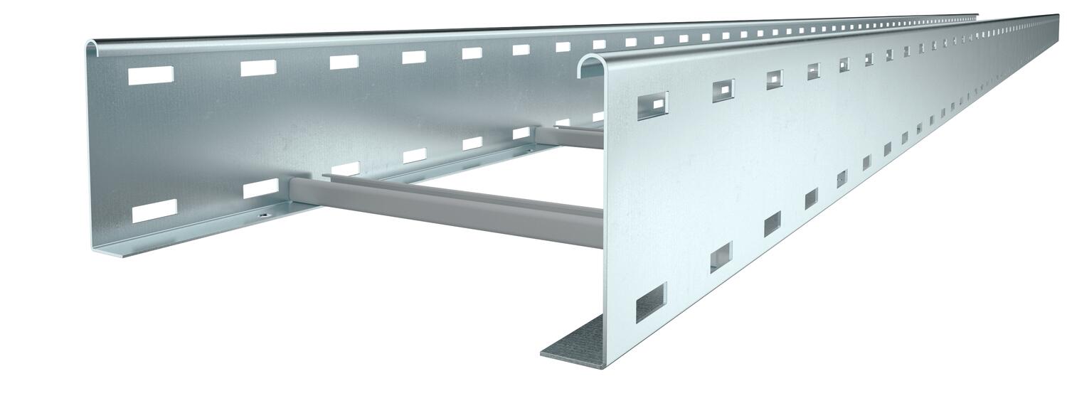 Description du produitEchelle à câbles avec longeron latéral perforé d'une hauteur d'aile de 110 mm, avec échelons rivetés (profilé en C) ouverts vers le haut.