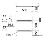 Description du produitEchelle à câbles avec longeron latéral perforé d'une hauteur d'aile de 110 mm, avec échelons rivetés (profilé en C) ouverts vers le haut.