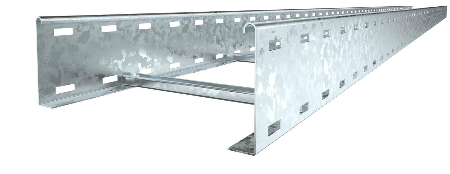 Description du produitEchelle à câbles avec longeron latéral perforé d'une hauteur d'aile de 110 mm, avec échelons rivetés (profilé en C) ouverts vers le haut.