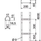 Description du produitEchelle à câbles avec longeron latéral perforé d'une hauteur d'aile de 60 mm, avec échelons NS rivetés (profilé en C) ouverts vers le haut.