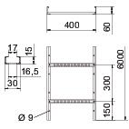 Description du produitEchelle à câbles avec longeron latéral perforé d'une hauteur d'aile de 60 mm, avec échelons NS rivetés (profilé en C) ouverts vers le haut.