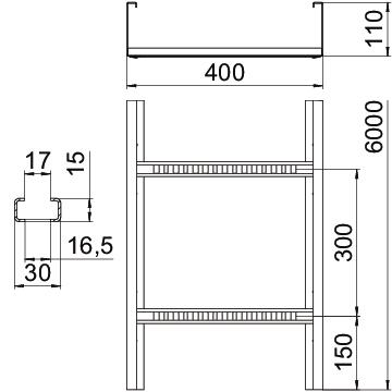Description du produitÉchelle à câbles longue portée d'une hauteur latérale de 110 mm, avec longeron perforé. Fixation de câbles et conduits avec les colliers de fixation de type 2056
