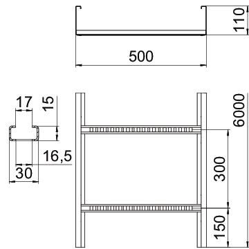 Description du produitÉchelle à câbles longue portée d'une hauteur latérale de 110 mm, avec longeron perforé. Fixation de câbles et conduits avec les colliers de fixation de type 2056