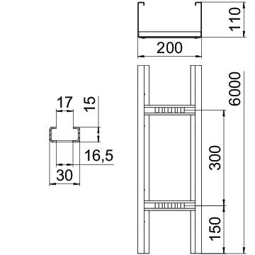 Description du produitÉchelle à câbles longue portée d'une hauteur latérale de 110 mm, avec longeron perforé. Fixation de câbles et conduits avec les colliers de fixation de type 2056