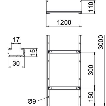 Description du produitÉchelle à câbles d'une hauteur d'aile de 110 mm avec échelons soudés à profilé C30 ouvert vers le haut. Longeron latéral enroulé pour le renforcement et la protection des bords. La fixation sur console s'effectue avec des pièces de serrage de type LKS 40. La fente de l'échelon mesure 16,5 mm. La bride de fixation correspondante est de type 2056.