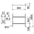 Description du produitEchelle à câbles avec longeron latéral perforé d'une hauteur d'aile de 60 mm, avec échelons NS rivetés (profilé en C) ouverts vers le haut.