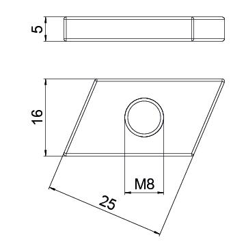 Avec ressort non Cote B 16,5 mm Cote L 26 mm Dimension M8 Dimension H 5 mm Empreinte CO2 (GWP) du berceau à la porte 0,0877 kg CO2e / 1 Pièce Filetage M8 Filetage, métrique 8 Hauteur 5 mm Largeur 16,5 mm Longueur 26 mm Matériau Acier inoxydable Surface nu, traité - Tous les types