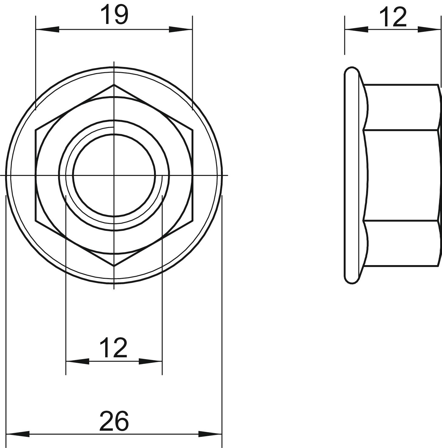Autobloquant non Avec bride oui Cote d 26 mm Dimension M12 Dimension h 12 mm Empreinte CO2 (GWP) du berceau à la porte 0,1013 kg CO2e / 1 Pièce Filet impérial 1/2 pouce Filetage M12 Filetage gauche Non Filetage, métrique 12 Matériau Acier inoxydable Méplat 18 Modèle écrou Écrou Sans halogène oui Surface nu, traité Système à visser écrou Six pans extérieur Type de filetage métrique - Tous les types