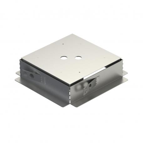 Le coffrage est disposé flottant sur les boîtes sous chape avec couvercle de montage de taille nominale 4, il obture les interstices entre la boîte sous plancher et le cadre de cassette.