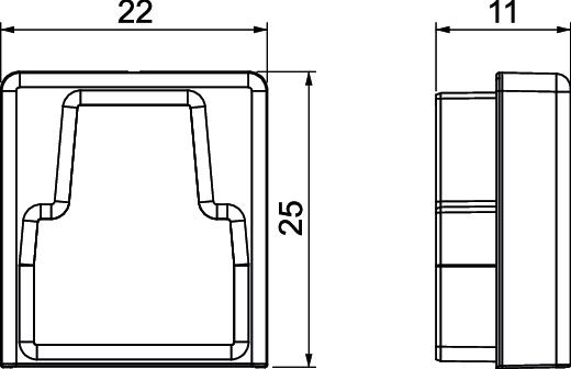 Couleur noir graphite ; RAL 9011 Dimension 20x20mm Empreinte CO2 (GWP) du berceau à la porte 0,0119 kg CO2e / 1 Pièce Film de protection non Hauteur 25 mm Indice de protection IP30 Indice de protection code IK IK10 Largeur 22 mm Longueur 11 mm Maintien en fonction non Matériau élastomère thermoplastique Modèle gauche/droite Sans halogène oui Type de fixation encliquetable Version du connecteur raccord intégré - Tous les types