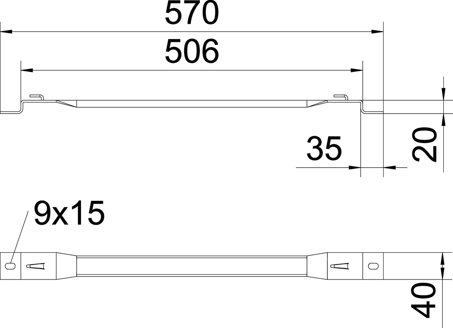 Les chemins de câbles treillis types GRM avec des hauteurs latérales de 35, 55 et 105 mm peuvent être montés sur l'étrier d'écartement.