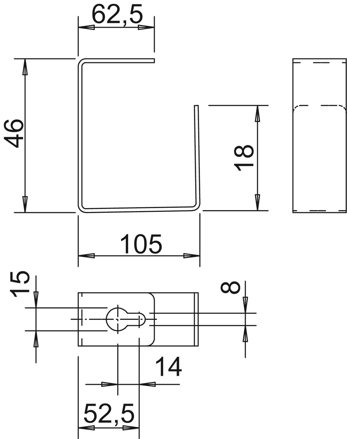 Description du produitÉtrier de déport pour faciliter le montage au plafond de la goulotte coupe-feu PYROLINE® Con D BSK, type BSK 090521 et type BSK 120521. Montage de l'étrier directement sur les chevilles de fixation de la goulotte coupe-feu.