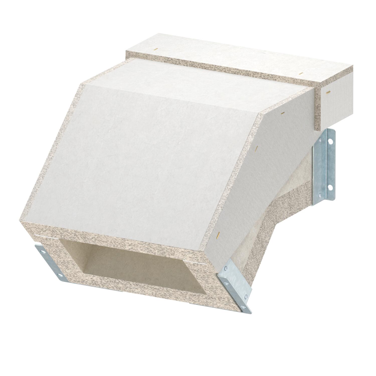 Angle de coude 45 ° Avec perforation non Classe de résistance au feu E - sécurité de fonctionnement 30 Classe de résistance au feu I - conduit d'installation 90 Cote B 338 mm Cote b 210 mm Cote L 226 mm Couleur gris Dimension 105x210 Dimension h 105 mm Dimension H 195 mm Fixation du couvercle desserrer Gaine sans Largeur 338 mm Matériau Béton léger à base de fibres de verre Matériau de l'isolant Béton léger à base de fibres de verre Nombre de faces résistantes aux flammes 4 Séparateurs possibles oui - Tous les types