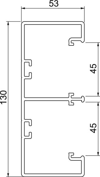 Couleur gris clair; RAL 7035 Couvercle compris dans la livraison oui Dimension 53x130x2000 Empreinte CO2 (GWP) du berceau à la porte 3,8239 kg CO2e / 1 Mètre Étrier de retenue de câble non Film de protection oui Forme de construction rectangulaire oui Hauteur 53 mm Indice de protection IP40 Indice de protection code IK IK08 Largeur 130 mm Largeur de la couvercle 2 45 mm Largeur de la partie supérieure 45 mm Longueur 2000 mm Matériau Chlorure de polyvinyle Modèle paroi arrière (face intérieure) profilé continu en C Nombre de parties supérieures 2 Nombre de séparateurs enfichables 2 Perforation au fond avec fond perforé Perforation de montage dans le fond oui Plage de températures d’utilisation max. 60 °C Plage de températures d’utilisation min. -15 °C Raccord de conduit non Sans halogène non Section utile 5400 mm² Symétrique oui Traitement antibactérien non Type de montage de la couvercle à l'intérieur - Tous les types