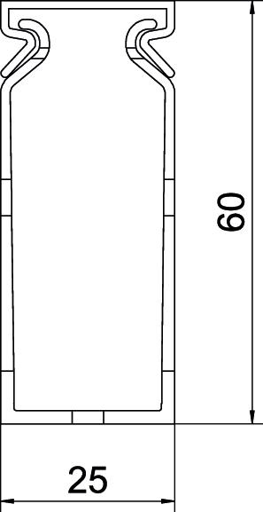 auto-dispersible oui Avec couvercle oui Couleur gris pierre; RAL 7030 Distance de la fente 5,5 mm Flexible non Hauteur 60 mm Largeur 25 mm Largeur de la fente 4,5 mm Longueur 2000 mm Matériau Chlorure de polyvinyle Modèle de paroi latérale fendu Plage de températures d’utilisation max. 60 °C Plage de températures d’utilisation min. -5 °C Résistant aux courants de fuite oui Sans halogène non Section utile 12 cm² Type de fixation Perforation au fond - Tous les types