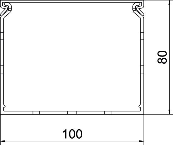 auto-dispersible oui Avec couvercle oui Couleur gris pierre; RAL 7030 Distance de la fente 5,5 mm Flexible non Hauteur 80 mm Largeur 100 mm Largeur de la fente 4,5 mm Longueur 2000 mm Matériau Chlorure de polyvinyle Modèle de paroi latérale fendu Plage de températures d’utilisation max. 60 °C Plage de températures d’utilisation min. -5 °C Résistant aux courants de fuite oui Sans halogène non Section utile 71,7 cm² Type de fixation Perforation au fond - Tous les types