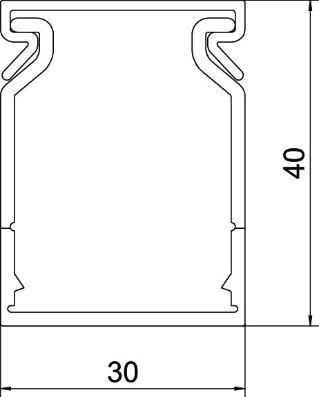 auto-dispersible oui Avec couvercle oui Couleur gris pierre; RAL 7030 Distance de la fente 6,5 mm Flexible non Hauteur 40 mm Largeur 30 mm Largeur de la fente 6 mm Longueur 2000 mm Matériau Chlorure de polyvinyle Modèle de paroi latérale fendu Plage de températures d’utilisation max. 60 °C Plage de températures d’utilisation min. -5 °C Résistant aux courants de fuite oui Sans halogène non Section utile 7,6 cm² Type de fixation Perforation au fond - Tous les types
