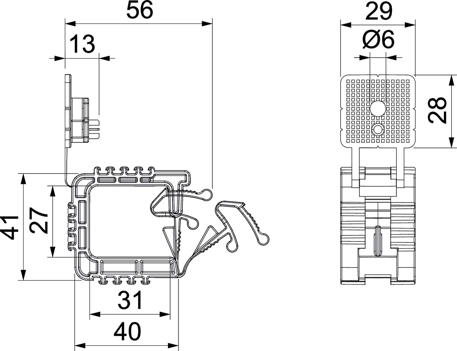 Description du produitPasse-câbles avec fixation intégrée, permettant de fixer jusqu’à 10 conducteurs NYM 3 x 1,5 mm² sur paroi murale ou plafond. Fixation par cheville à frapper ou cheville à expansion. Également compatible avec les appareils de pose à gaz ou à batterie des marques Bosch, Fischer et Spit (diamètre intérieur du nez : 7 mm). Trou de fixation Ø 6 mm. Espacement de fixation conseillé en charge maximale : 2,5 à 4 m, sous réserve des normes nationales applicables.