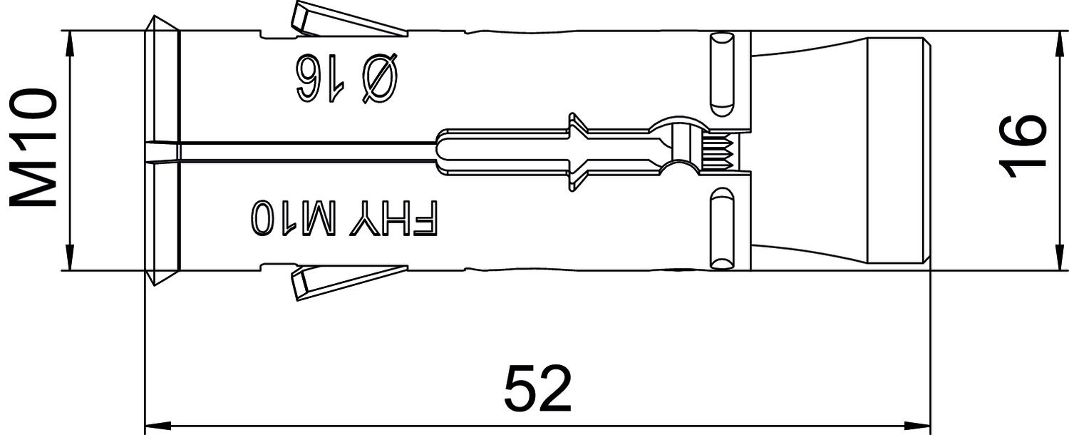 Avec filetage oui Avec vis non Couleur zinc Diamètre de perçage min. 16 mm Dimension 16x52 Filetage M10 Filetage, métrique 10 Matériau Acier Profondeur de perçage 65 mm Surface galvanisé Type de filetage métrique - Tous les types