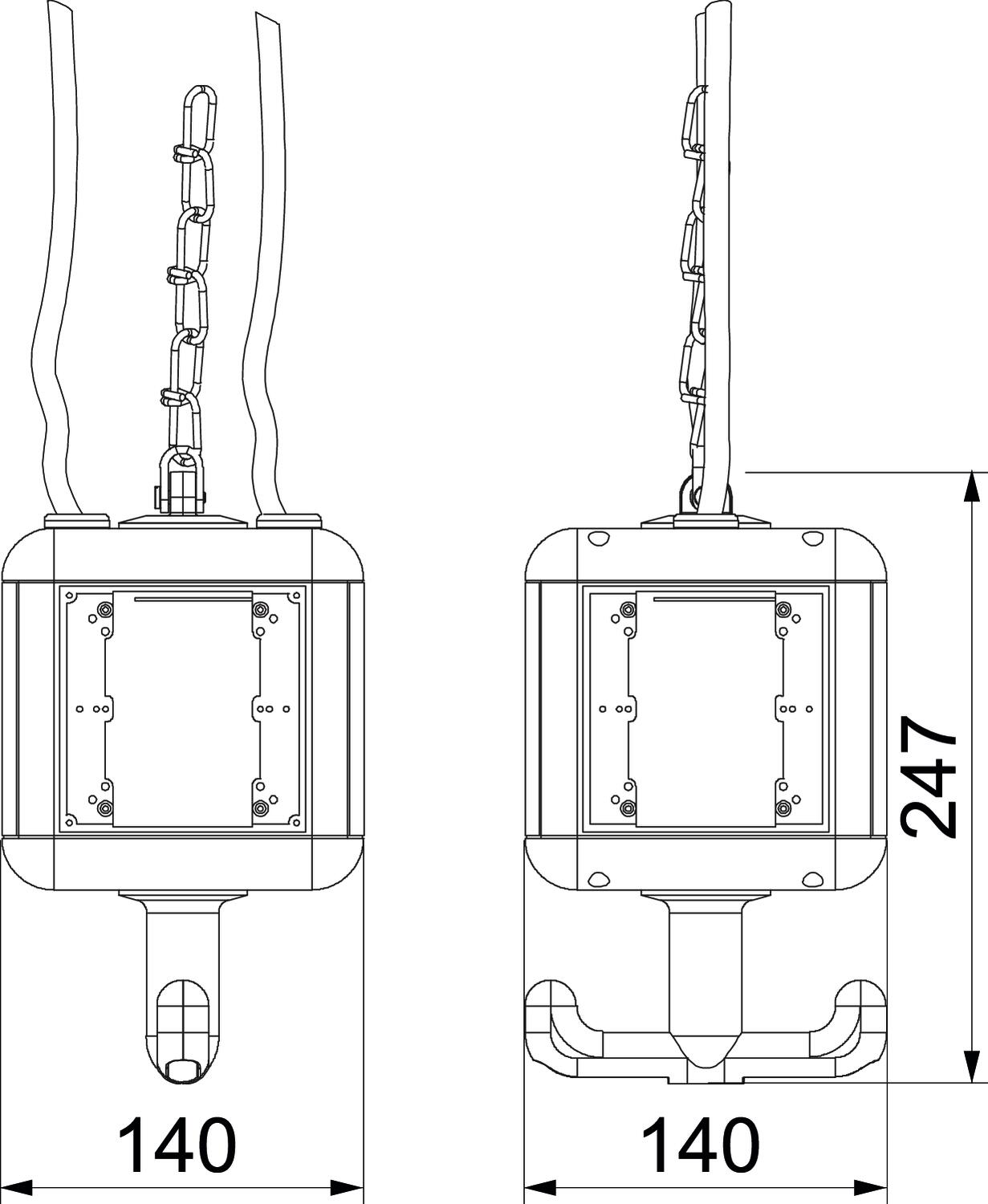 Description du produitBoîtier vide avec oeillets de suspension et poignée crochet, pour montage de 4 instruments électriques, avec cloison de séparation jointe. Sans plaque de recouvrement.
