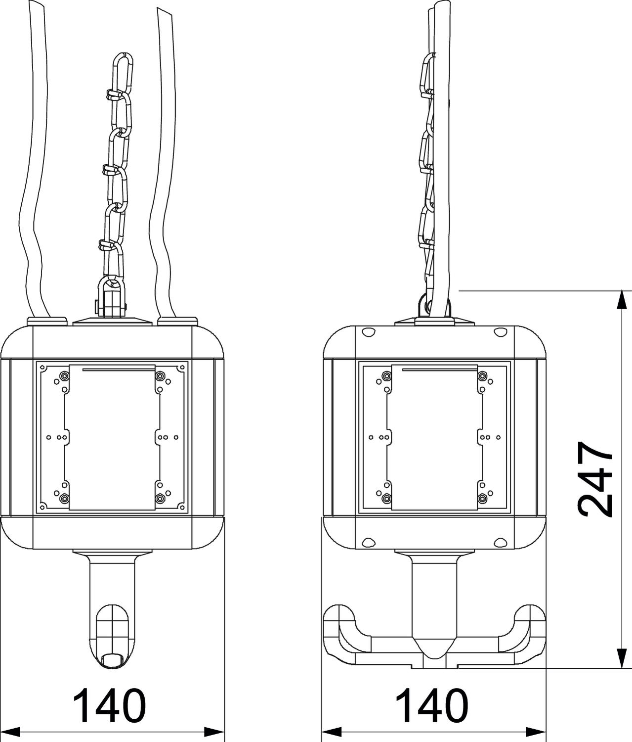 Description du produitBoîtier vide avec oeillets de suspension et poignée crochet, pour montage de 4 instruments électriques, avec cloison de séparation jointe. Sans plaque de recouvrement.