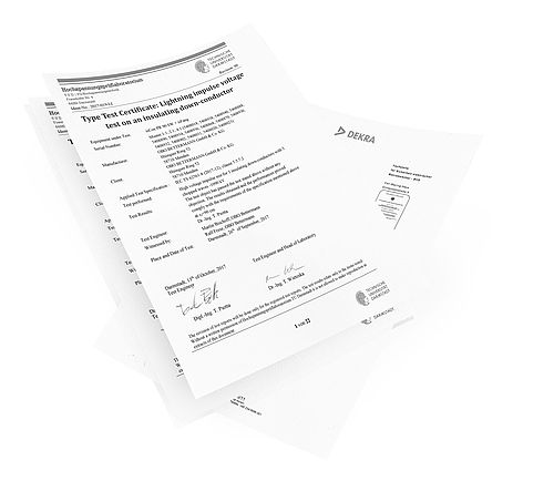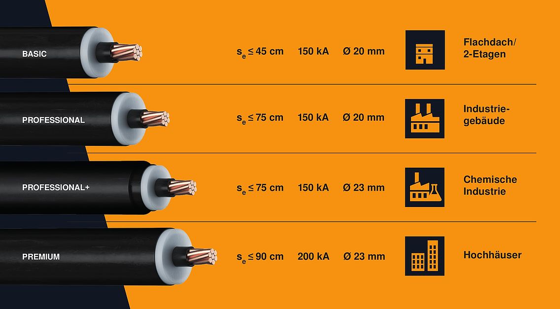 La descente IsCon® haute tension isolée est la solution moderne pour les planificateurs et monteurs de systèmes de protection contre la foudre afin d'observer les distances de séparation nécessaires en toute sécurité. Avec sa section de câble normative, elle satisfait aux exigences de la norme VDE 0185-561-2 (CEI/EN 62561-2). De nombreux tests de courant de foudre selon VDE 0185-561-1 (CEI/EN 62561-1) ainsi que selon CEI TS 62561-8 à 200 kA max. (10/350) certifient une utilisation sûre dans toutes les classes de protection contre la foudre.