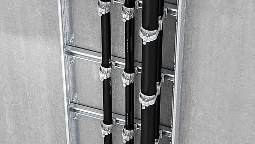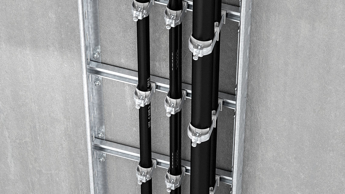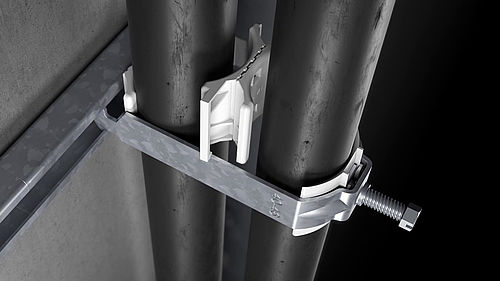 La contre-plaque universelle facilite également considérablement les installations. En effet, la contre-plaque est insérée par le haut juste avant le serrage de la bride de fixation. De ce fait, l'espace disponible pour installer la bride de fixation est plus grand, ce qui facilite l'installation dans des endroits difficilement accessibles. En outre, la contre-plaque permet une installation ultérieure aisée, car il n'est pas nécessaire de démonter complètement la bride de fixation.