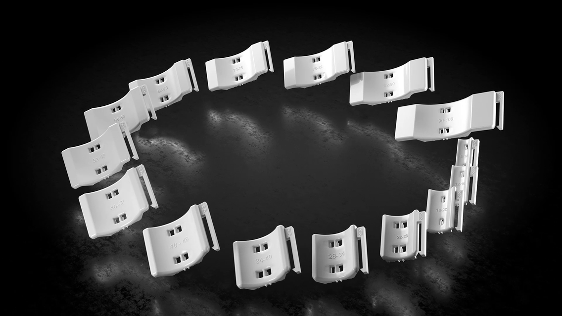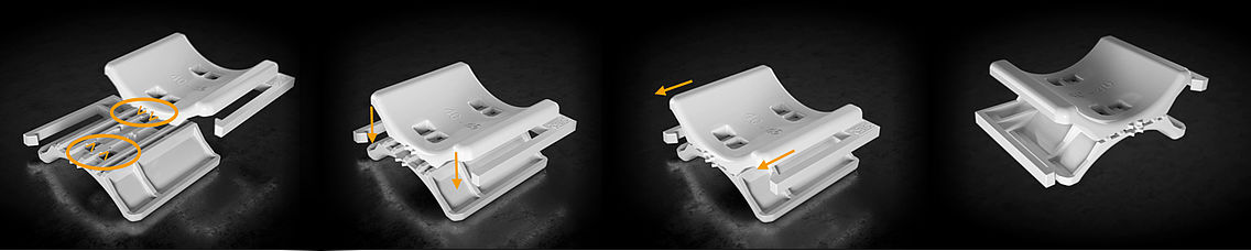 Grâce à un contour astucieux breveté au dos, il est possible de relier deux contre-plaques identiques pour former une double plaque. Deux flèches situées au dos et sur la face inférieure des contre-plaques universelles permettent de les associer correctement. Des contre-plaques universelles combinées pour former une double plaque peuvent être à tout moment démontés sans outil puis réutilisés séparément ou bien de nouveau comme double plaque.