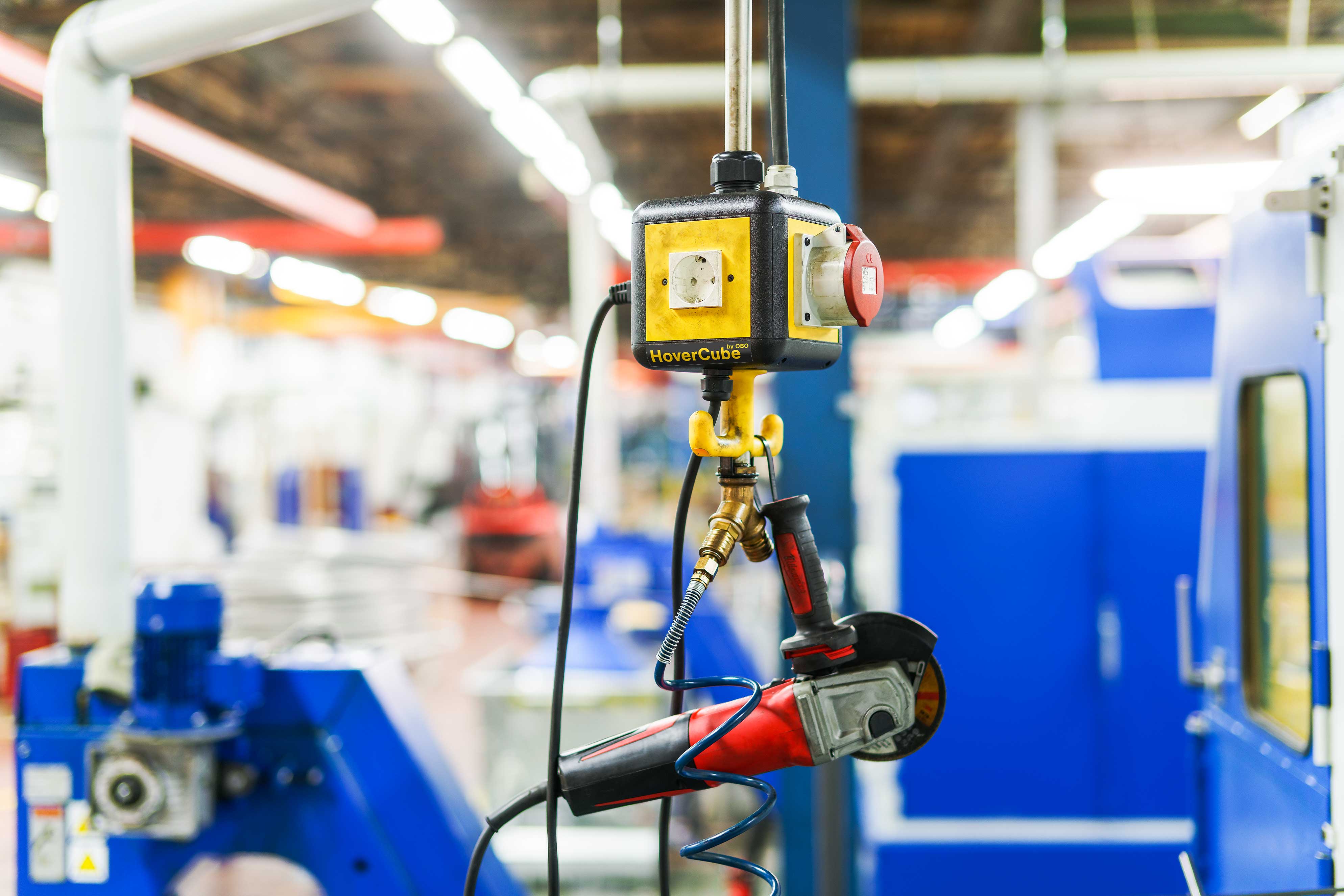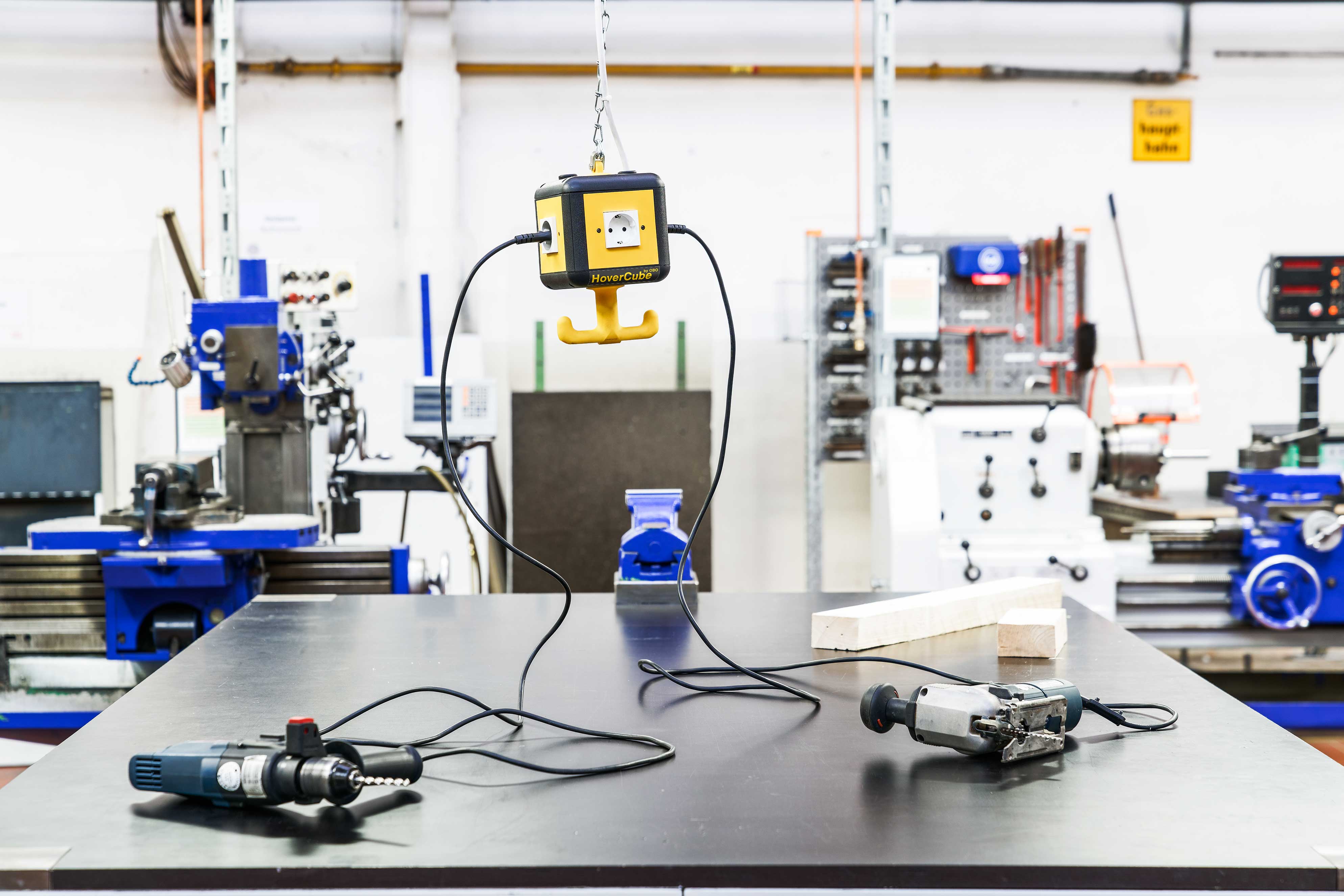 Les boîtiers des cubes d'alimentation sont en polyamide hautement résistant et peuvent accueillir quatre à huit appareils d'installation. Les HoverCubes permettent ainsi de raccorder directement des moyens de travail au poste de travail, et en toute sécurité. La suspension peut être effectuée au choix par chaîne, par ressort ou de manière ergonomique avec le positionneur.