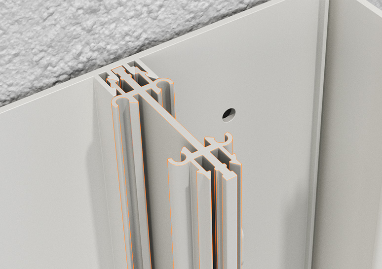 - Jonctions pour sol et plafond interchangeables afin de masquer les entrées et sorties de câbles.