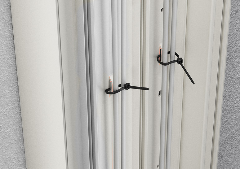 - Embase à colliers de serrage dans le fond de la gaine pour regroupement et fixation des câbles avec serrecâbles.
