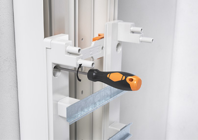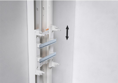 Ajuster la hauteur du coffret électrique en faisant coulisser la fixation Magic dans la gaine à la hauteur souhaitée, puis verrouiller à l‘aide d‘un tournevis.