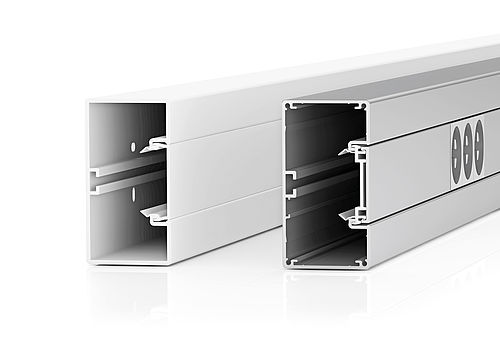 Aussi design que fonctionnel, la goulotte d'appareillages Rapid 45-2 en plastique est parfait pour une installation dans les bureaux. La goulotte en plastique est disponible en noir, gris clair et blanc pur. Avec au total trois largeurs disponibles, les goulottes offrent désormais encore plus de possibilités d’application.