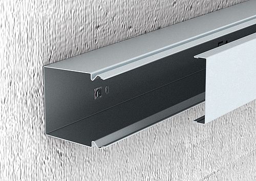 Les goulottes de distribution LKM conviennent également pour le montage horizontal au mur et au plafond. Dans ce contexte, il est possible de prévenir toute chute des câbles à l’aide d’un clip de maintien pour la goulotte de type LKM60100. Le couvercle de la goulotte est tout simplement clipsé sur la partie basse de la goulotte une fois l’installation des câbles terminée. La liaison équipotentielle entre la partie supérieure et celle inférieure ainsi que sous les longueurs de goulotte est assurée sans avoir à utiliser de câbles de raccordement supplémentaires. Cela permet d’économiser du temps tout en assurant une protection efficace.