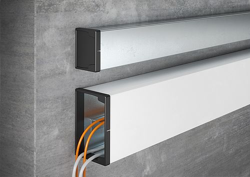 Les bagues de protection des arêtes du système LKM peuvent être installées ultérieurement en toute simplicité – même lorsque les goulottes sont déjà montées sur le mur ou qu’elles ont déjà été équipées de câbles. Les bagues de protection des arêtes fabriquées à partir de matériau sans halogène se distinguent non seulement par leur design attrayant mais également par leur haptique conviviale. Des embouts fermés sont disponibles dans le même type de construction.