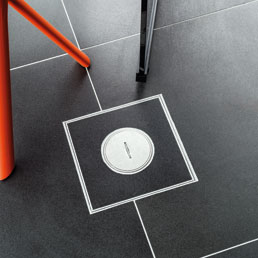 Les cassettes OBO peuvent être mises de niveau avec le sol fini ainsi qu’être découplées phoniquement en version spéciale. Un modèle carré est disponible, avec différentes variantes pour les revêtements de sol nettoyés à sec ou à l’eau. Les cadres de cassette existent en acier inoxydable ou en laiton de qualité. Une plaque en tôle d'acier intégrée de 4 mm d'épaisseur améliore en outre la capacité de charge des cassettes. Dans les installations d’essai ultramodernes du centre de test BET d’OBO, les cassettes sont testées conformément à la norme EN 50085-2-2. Tous les revêtements de sol résistants à la coupure tels que le carrelage, la pierre, le marbre, le parquet, les lames de bois ou encore le PVC et le vinyle s’intègrent parfaitement dans les couvercles de cassettes.